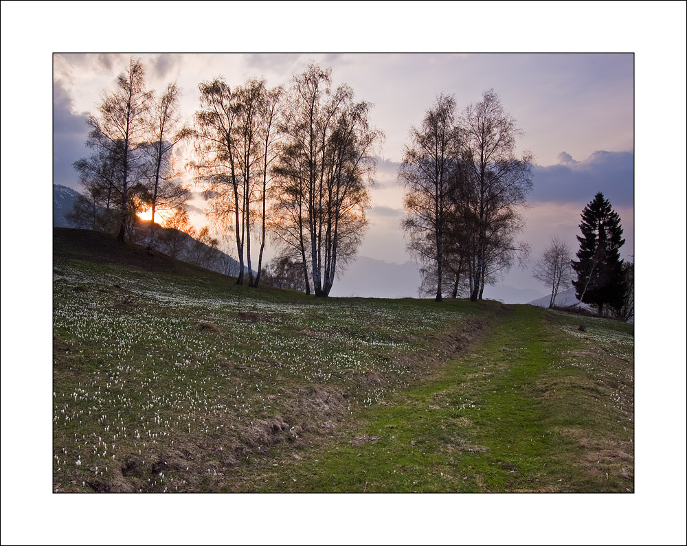 bella, forse taglierei sotto lasciando giusto il alberi con un po di colinetta, ma resta un bello scatto, trovo molto ben gestita la luce e la profondita di campo!