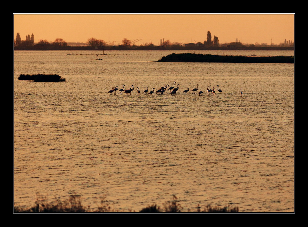 Bella l'atmosfera e la situazione colte..., l'erba sfocata in basso però a mio parere non completa a dovere il quadro..., forse meglio farne a meno insieme ad una buona fetta di acqua, con un taglio più panoramico.