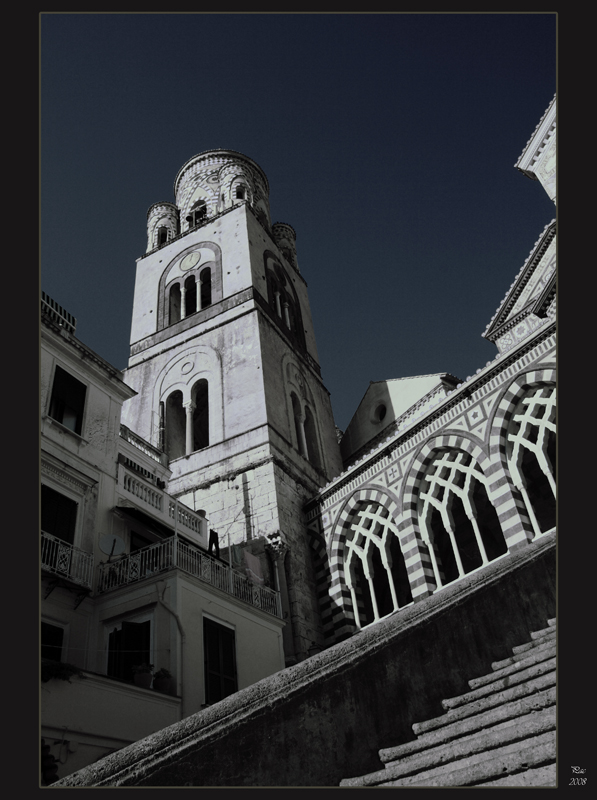 Bella inquadratura. Avrei preso un po' più di scale, ma ti saresti perso del cielo, quindi immagino che non si potesse fare altrimenti. Benchè io non ami le manipolazioni di colore, questa fa un bell'effetto di "ghiaccio" (ho un monitor del cavolo, non capisco se solo io vedo una componente di blu...) che fa contrasto con una architettura che ricorda climi molto caldi. Braaav!  |