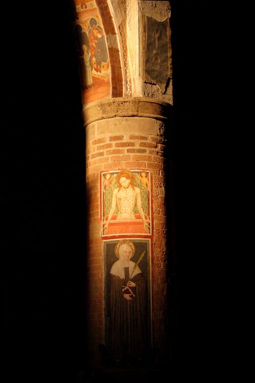 A mio avviso, pur trovandola una buona immagine, ha come limite la poca naturalezza. La luce calda sulla colonna è morbida e naturale e rimanda ad un assolato pomeriggio che volge alla sera, manca però il resto della chiesa che con una lama così di luce rimarrebbe in penombra e non nel buio chiuso. Recuperare le ombre oltre che restituire all'immagine la giusta naturalezza, gli permetterebbe di guadagnare in profondità.