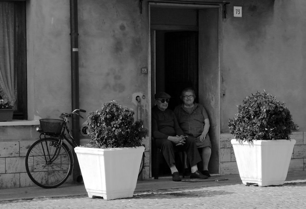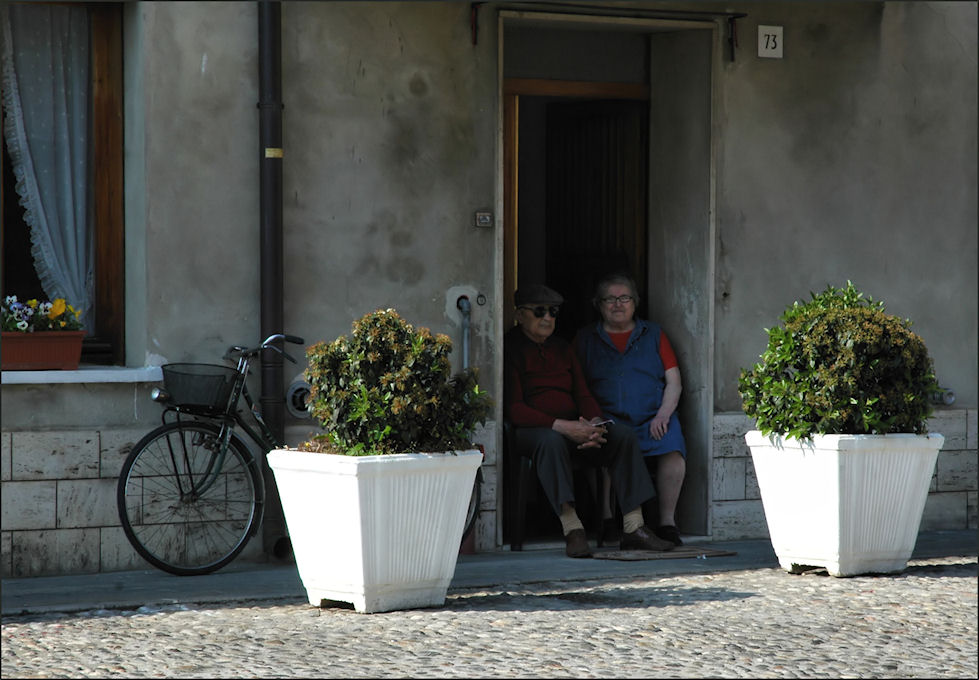 E' preciso preciso quello che ancora incontri per strada in molti paesini della bassa emiliana, mantovano, dove un tempo si stendeva il favoloso mare Gerundo. Ci sta bene il tono seppiato, ma ci sarebbe stata bene anche un poco più di cura nello svolgere il compito Quei due, visto anche l'impegno di lei nel mettersi in posa, meritano più attenzione. Bella, ma perfettibile con poco.