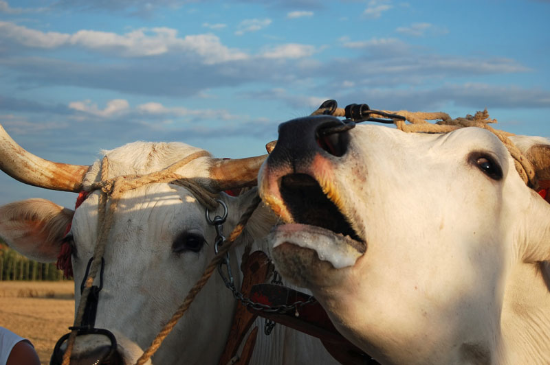 Per quanto la luce mi piaccia moltissimo, aver tagliato il corno ed il muso del bue di sinistra rende la foto errata sotto il profilo della composizione e "asfissiante" nell'osservarla.