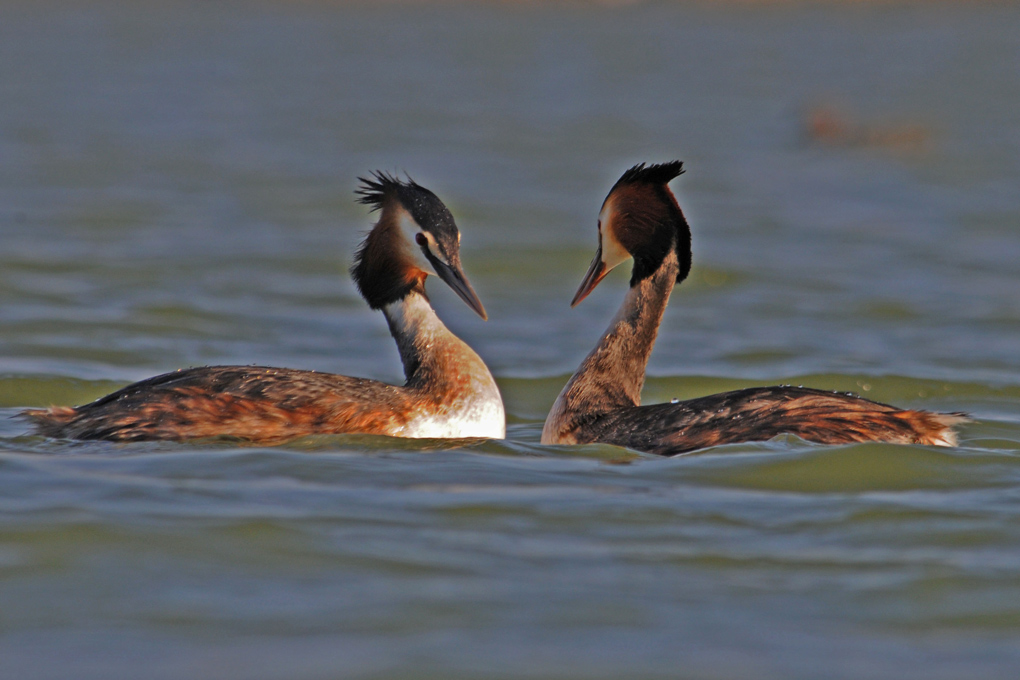 Bella la postura degli svassi, peccato che la PP non sia il massimo, si vedono troppo gli aloni chiari di un intervento per rendere più leggibili le teste ed i colli.