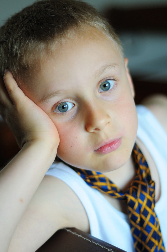 Lui giocava a fare il modello, quella sera dovevamo uscire con i sui amichetti ed amichette e lui si è messo la cravatta, una mia cravatta su un suo vestito sportivo. Qui pero'non è ancora vestito.