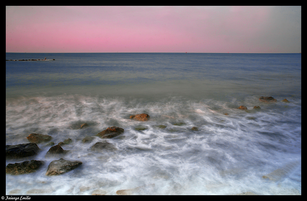 Che strana, nulla sembra a posto, eppure, basta lasciarsi un poco andare e questa tua foto riesce con la sua indeterminatezza a rapirti l'attenzione e a condurti laggiù, all'orizzonte per fonderti nel rosa. Smile