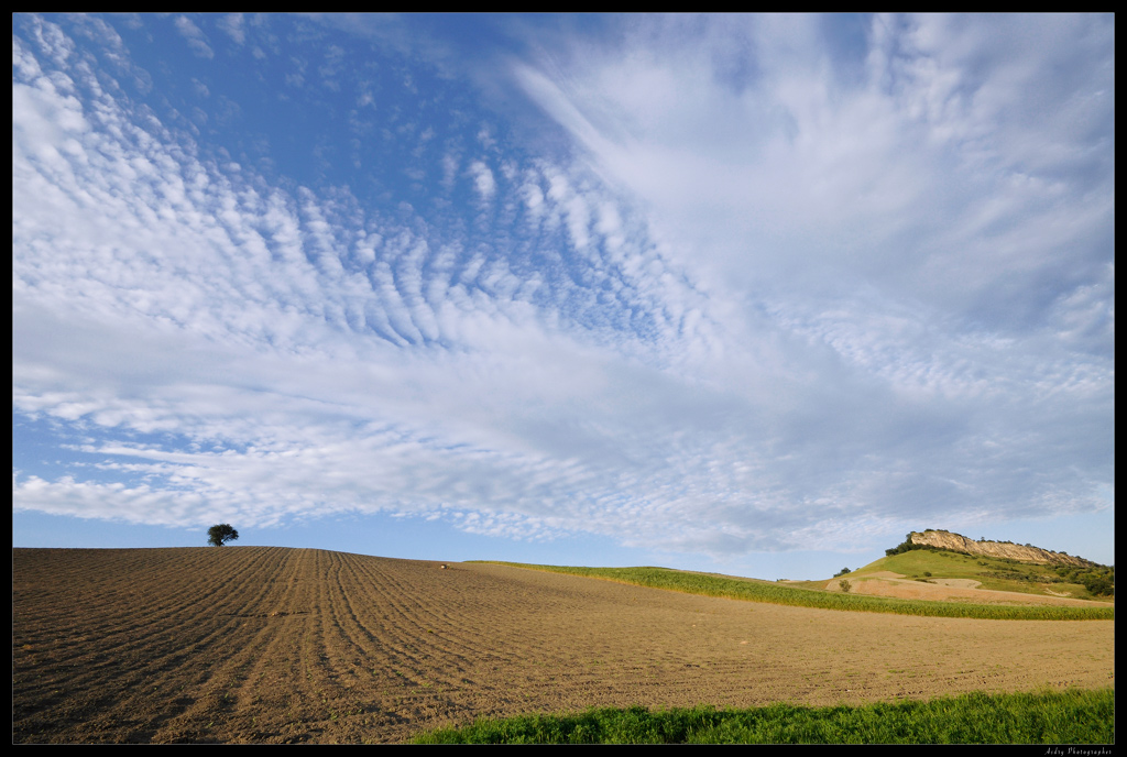 Mi piace molto: sei riuscito a sfruttare tutte le ' linee ' presenti nella scena per guidare lo sguardo nell'esplorazione della foto verso l'albero e la collinetta. Complimenti.