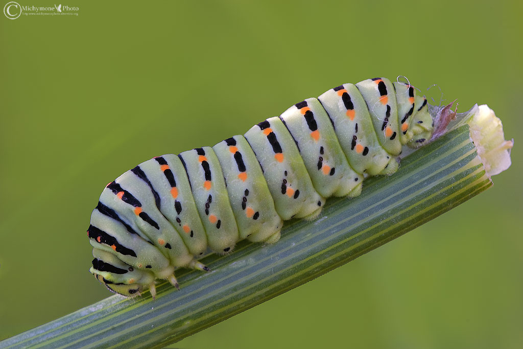 Bellissimo bruco di macaone, ripreso in maniera eccellente... si staglia sullo sfondo che è un piacere per gli occhi! Ok!