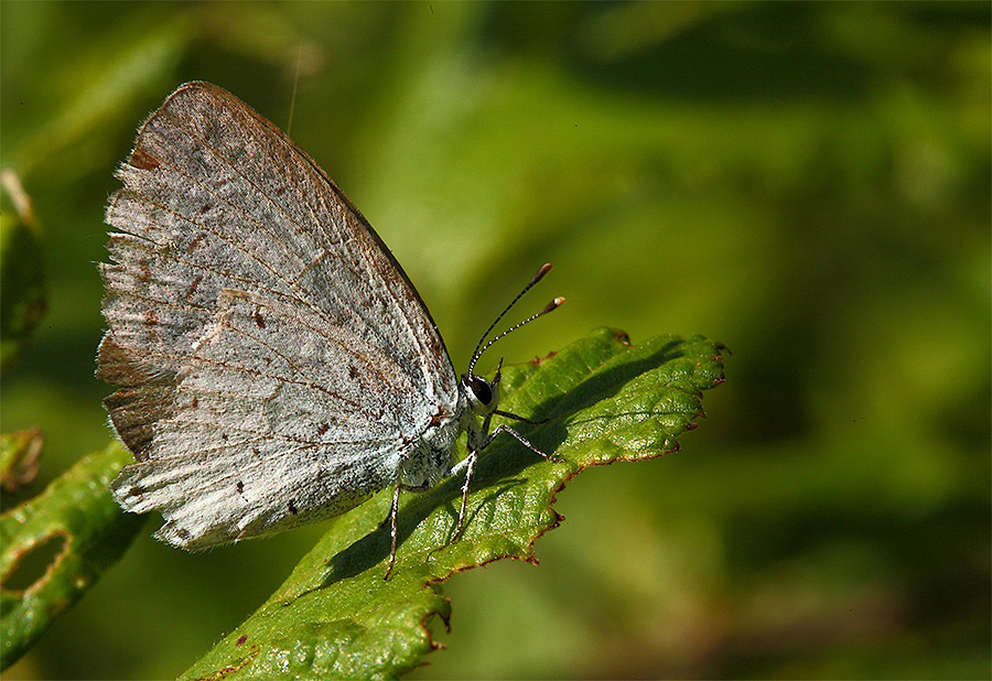 in effetti è piuttosto vissuta questa farfalla....avrà avuto una vita piuttosto movimentata per ridursi così! buona la composizione e la nitidezza...mi spiace un pò per la luce non ottimale per lo scatto e per le foglie a sinistra non proprio gradevoli.