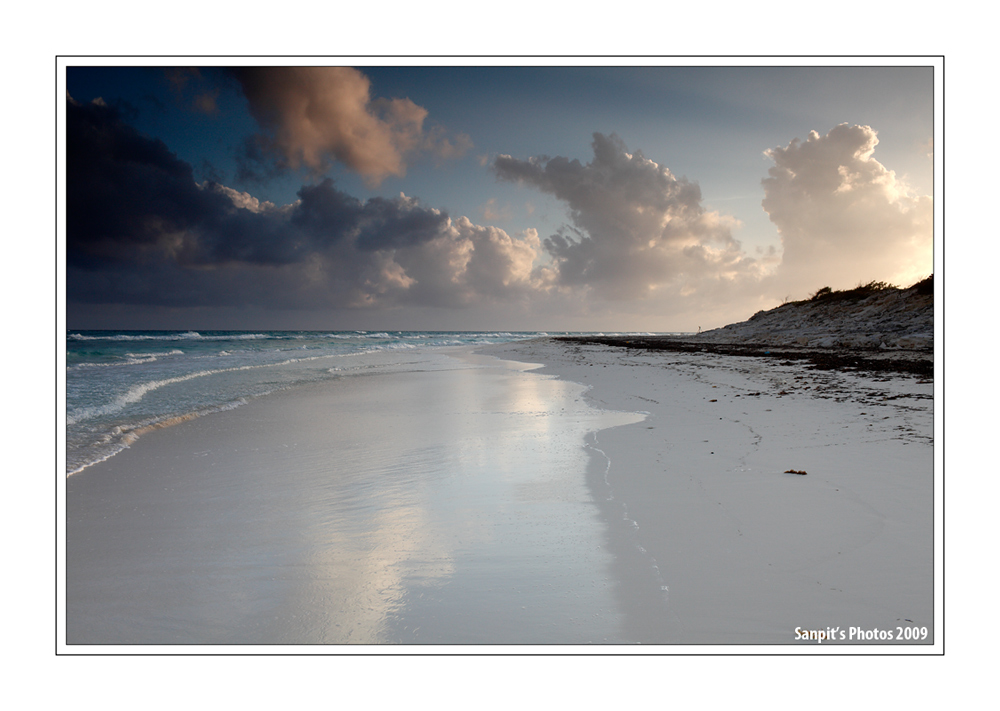 Veramente bello il contrasto forte tra i toni chiari del bagnasciuga e quelli scuri delle nuvole a sinistra.