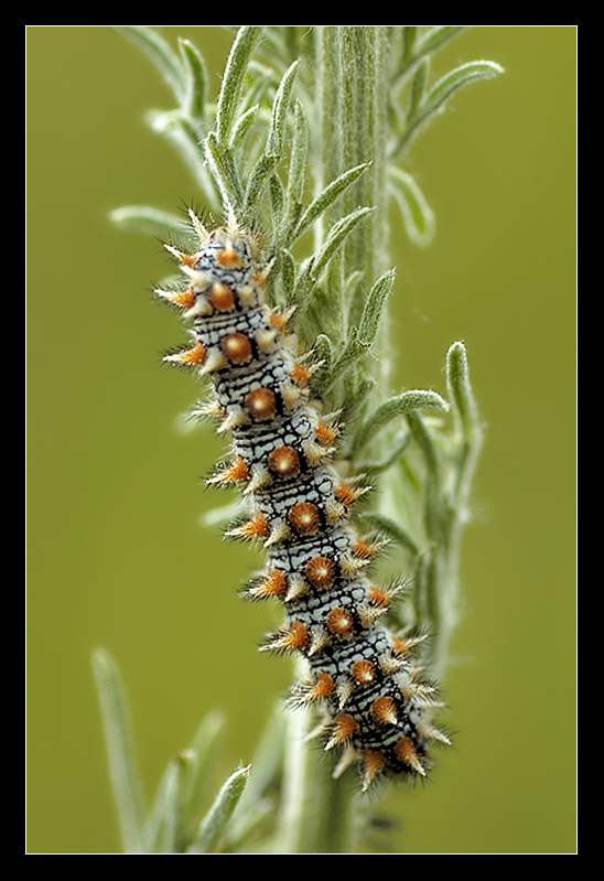 E' un bruco di melitea didyma. Il problema della nitidezza a cui fai cenno dipende a mio avviso dalla mano libera.