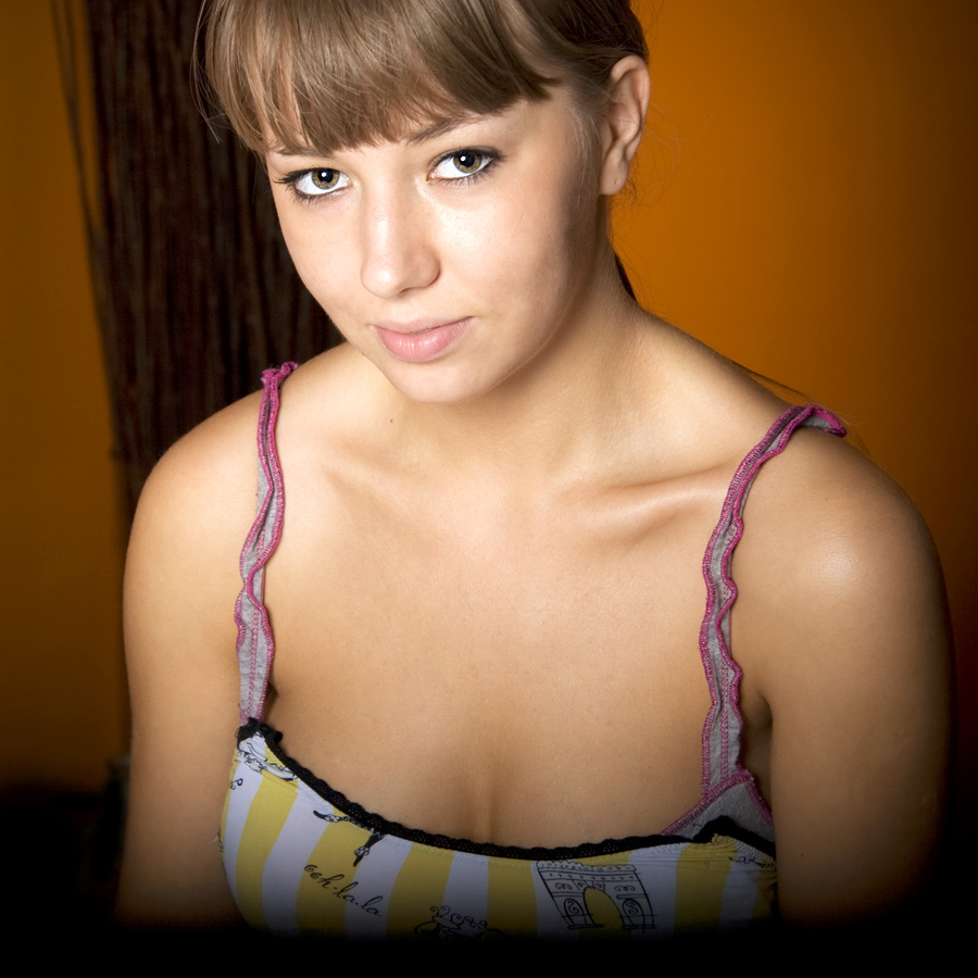 Continuo a dire che questa ragazza ti può aiutare ad avere uno scatto superiore. Questo scatto non è male, ci sono alcune cose che non mi convincono come lo sfondo con l'elemento di disturbo, le alte luci quasi al limite e la banda nera sulla parte bassa del fotogramma. Il taglio quadrato non saprei.