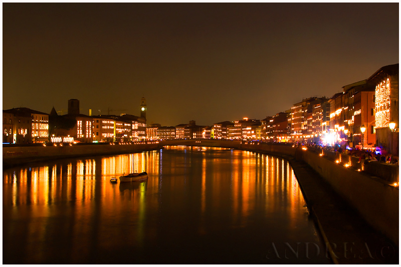 La festa di San Ranieri è molto suggestiva e ci hai regalatouno scatto che ci fà ammirare la bellezza dell'evento, tuttavia ci sono dei problemini a livello di immagine i palazzi non appaiono nitidi sarebbe interessante sapere qualche dato di scatto e se hai usato il cavalletto