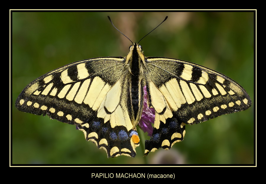 Questa è una delle farfalle più belle credo, che si possono vedere dalle nostre parti, con i suoi 8 cm di apertura alare e i suoi suggestivi colori giallo, viola, blu, è stata una fortuna poterla incontrare e fotografare, peccato avesse l'ala destra rovinata, eccola comunque in tutta la sua maestosità. _________________ Sony Alpha580 + Tam SP AF 28-75 f/2,8 XR + Tam 90 f/2.8 Di macro + Tam 70-300 f/4-5,6 USD + Sig 10-20 f4-5,6 EX DC |