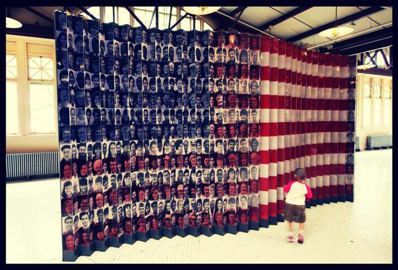 Per chi non lo sapesse questa struttura è fatta in modo che da un lato ci sono colori e stelle della bandiera, mentre dall'altro ci sono foto sparse..