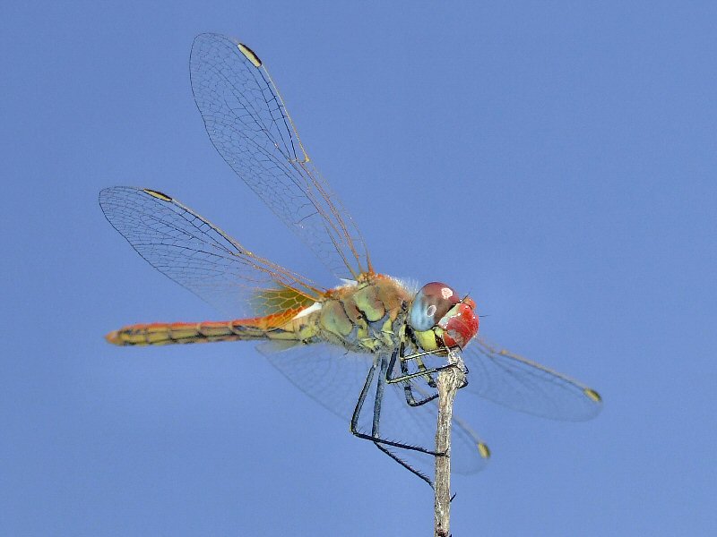 Se chiudevi di più il diaframma, per la ripresa in diagonale, anche la coda sarebbe venuta a fuoco, migliorando anche la testa, senza avere influenza alcuna sullo sfondo del cielo.