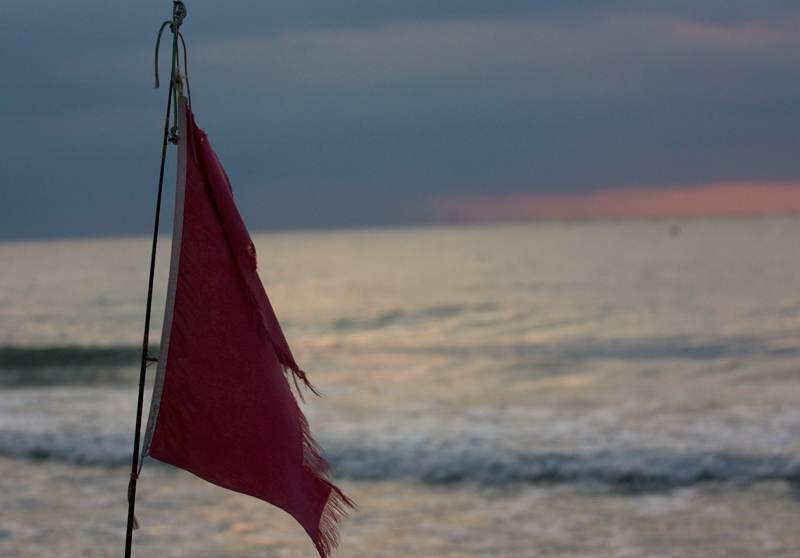 Mi piace la ripresa di colre del rossore del tramonto sullo sfondo con il colore della bandierina logorata dal vento.