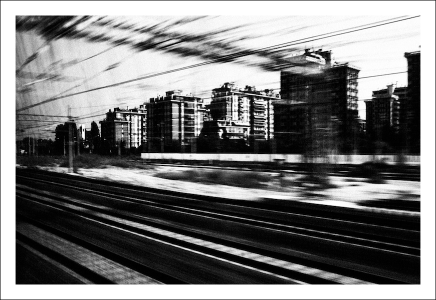 mi piace, sarà che mi ricorda le foto dei quotidiani di tanti anni fa, sporche e scure d'inchiostro....aggiunta al soggetto metropolitano in corsa da un treno, devo dire che molto ben riuscita.
