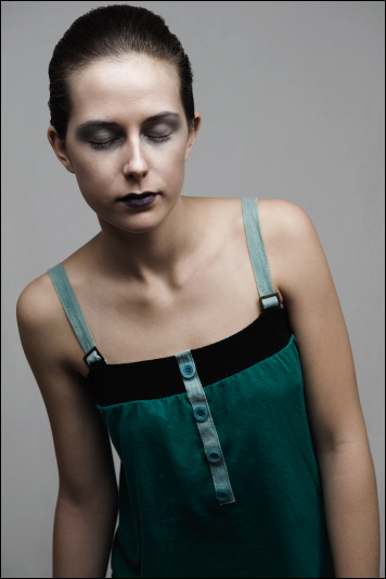 Qui la luce mi piace di più rispetto all'altro scatto (simply), ma secondo me avresto dovuto sottoesporre un po' (la fronte è troppo chiara rispetto al resto del corpo) ed usare anche qui un pannello riflettente per schiarire il vestito.
