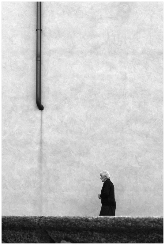 La foto si presta bene ad una interpretazione in b&n. Non è vero che non ci sono diverse luminanze: il muro chiaro e il tubo sono nella stessa zona? L’ abito e il muro chiaro sono nella stessa zona? E il muro di pietra al piede della foto? Ma forse ho capito cosa intendi.