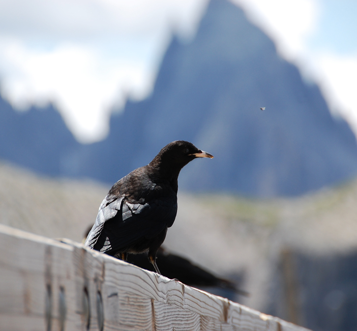 non mi piace però il il taglio fuori formato ,hai voluto includere la montagna ma io avrei chiuso sul gracchio e la mosca che sono il soggetto della foto.