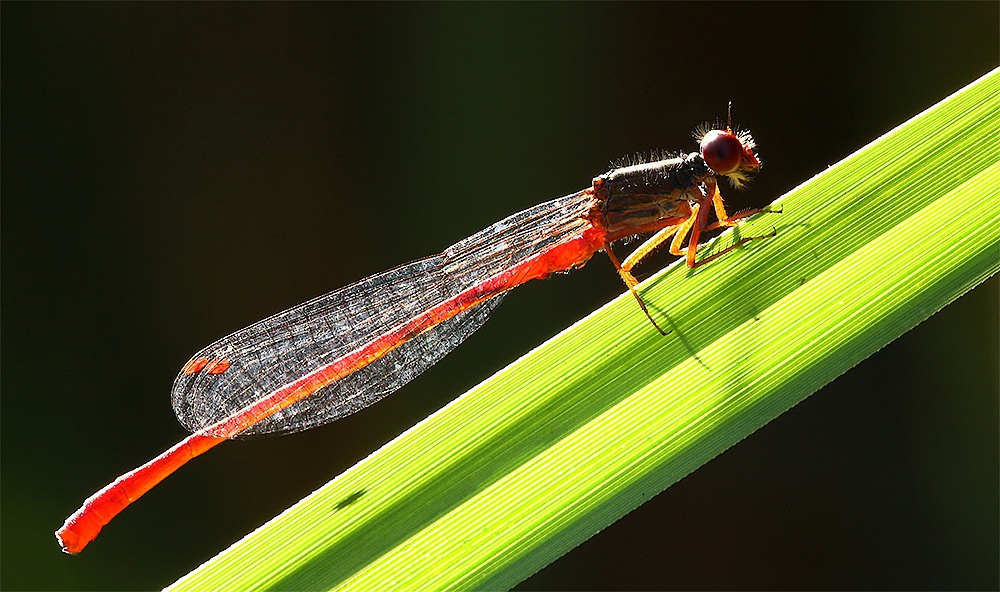 Esaminando la damigella, sono visibili zone in cui la luce è molto alta sia sul bordo esterno della damigella che sul posatoio.