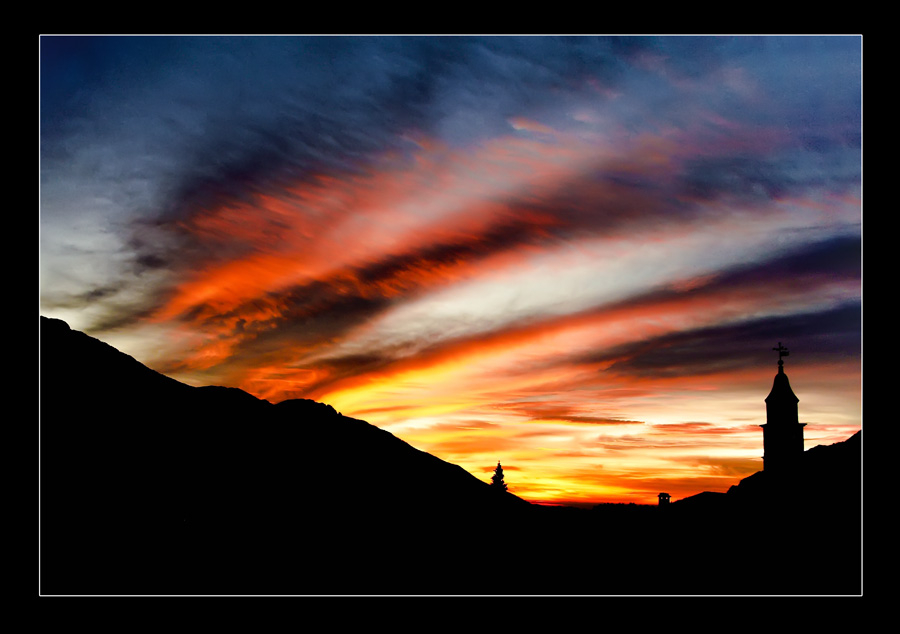 .....molto interessanti i toni ripresi, piacevole la silouette grazie a due elementi immediatamente riconoscibili. L'occhio dell'osservatore rimbalza piacevolmente dal campanile all'albero, la diversità dimensionale tra i due elementi aiuta a mantenere l'equilibrio compositivo sbilanciato giustamente nei confronti della costruzione. Il cielo così drammatico aggiunge valore allo scatto.