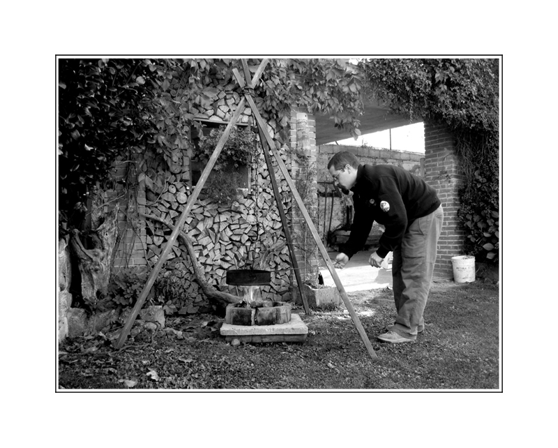 La scelta del punto di ripresa e della focale, per quanto consentano di restituire una visione d'insieme ordinata e completa, a mio personale avviso, non consentono però di coinvolgere attivamente lo spettatore: come in realtà si sarebbe potuto fare componendo frontalmente la scena, con una focale grandangolare, ponendo quindi in diretta relazione il braciere ed il soggetto.