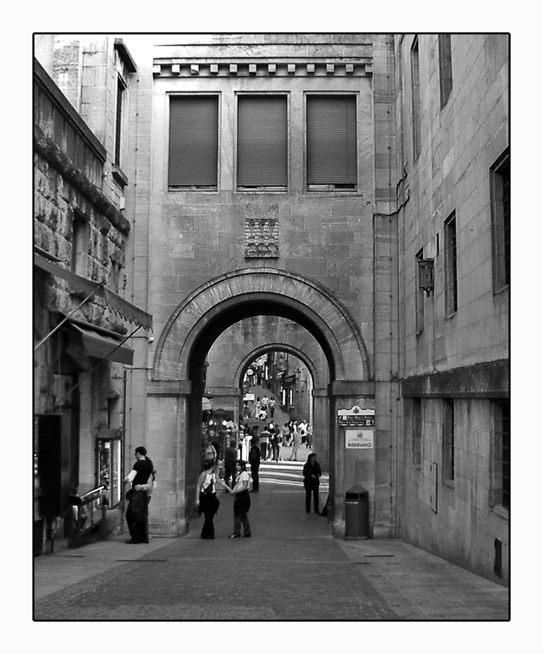 la composizione mi piace con i due archi in successione che guidano lo sguardo verso la strada in salita, trovo però che manche un pò di nitidezza e di contrasto e così mi sono permesso di modificrla secondo il mio gusto personale.