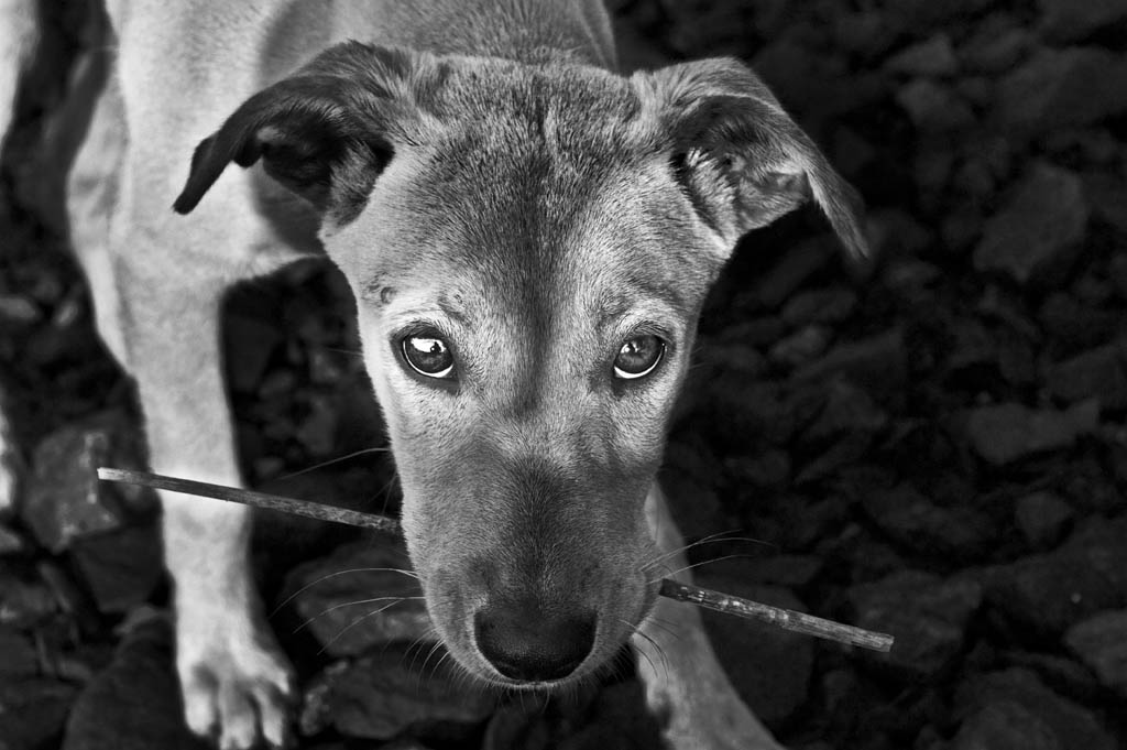 Mi pare ben giocata, forse avrei attenuato la luminosità corpo/zampa a sx. Bello il riflesso del fotografo a scurire l'occhio, e anche l'inclinazione del bastoncino porto timidamente contribuisce alla composizione e a rafforzare il titolo.