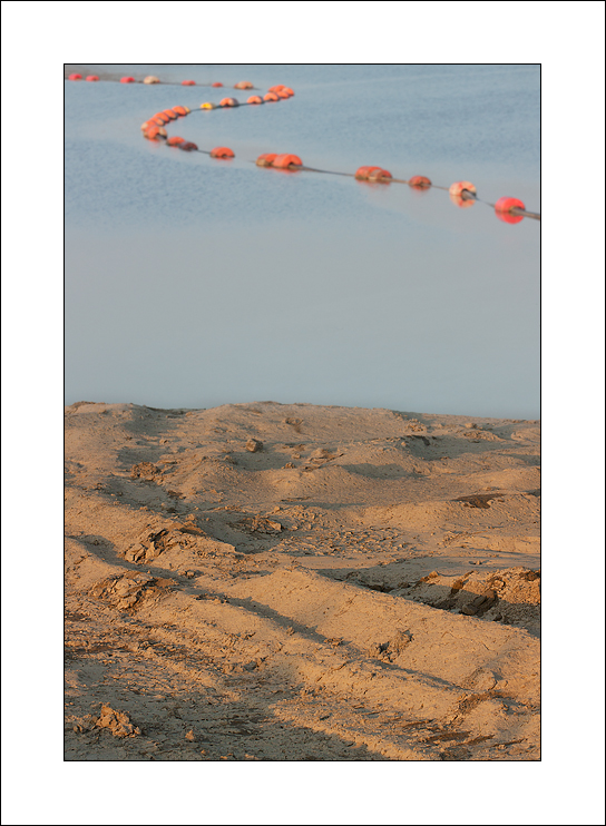 Quanta poesia in questa immagine. Le boe sembrano segnare un percorso oltre la terraferma, verso il mare, verso l'azzurro infinito. Davvero incantevole la luce, i segni in un fazzoletto di sabbia umida tracciano un vero paesaggio.Complimenti Pio.