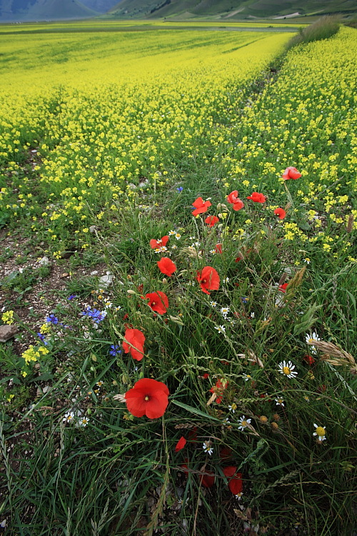 Mi piace molto per la sua naturalezza...non hai forzato su saturazioni e contrasti...solo un particolare non mi piace...la spiga ribelle che entra a destra...infine...credo si tratti di papaveri...ma aspetterei qualcuno più esperto...