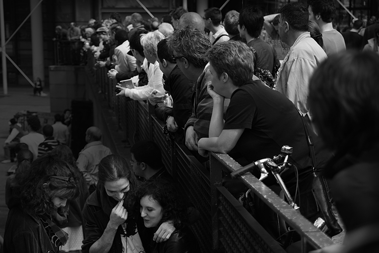 Per me il vero soggetto della foto è alla pari quel manubrio di bicicletta e poi la folla, il caos, il movimento, e non un elemento umano in particolare all'interno dell'inqudratura,