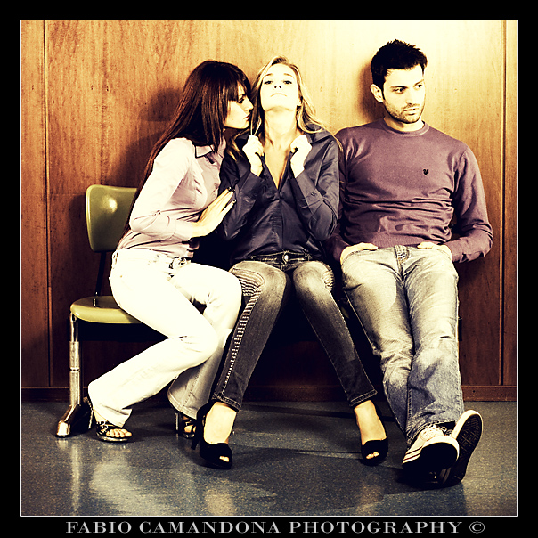 dai pantaloni della prima modella sino al chiaro dei volti di tutti e tre...