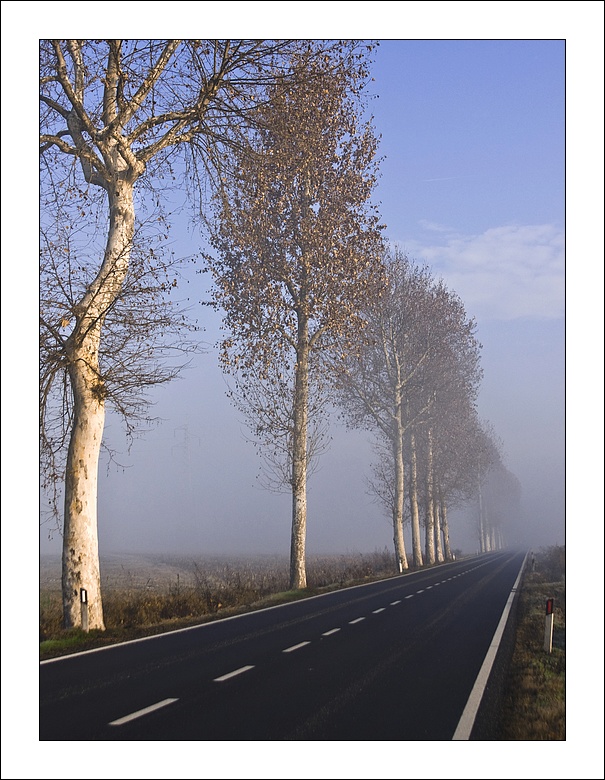| Mi sembra la statale tra Villanova e Trofarello . Bella foto con una bella composizione ,complimenti ed Auguri di buon anno. |