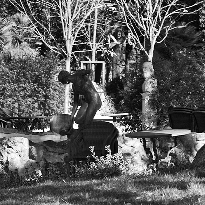 Sarà invidia quella del mezzobusto? A lui che le forme intere son negate trovarsi immobile ad osservar le terga della ninfa. Potesse almeno allungar mano per gioire di marmorea concretezza.