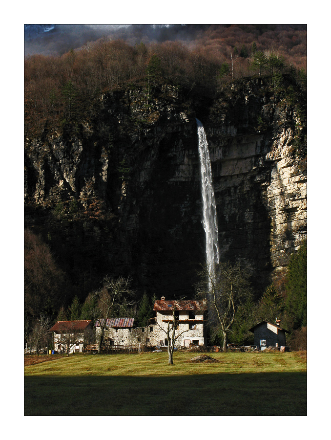 E'pazzesca questa cascata così a ridosso delle case, ottima immagine, ben fatta, ciao.