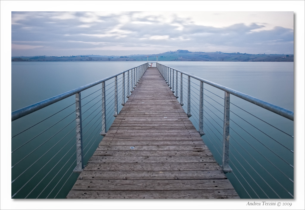 immagine ben fatta, simmetrica, pulita. Avrei visto bene una presenza umana lungo la passerella, ma così com'è esprime effettivamente bene una sensazione di quiete e silenzio, come descritto nel titolo Wink