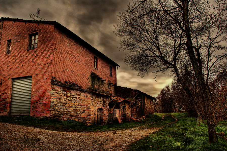 Nella tua foto c'è qualcosa che mi piace, o mi attira, ed è questa strabenedetta saturazione che, secondo me, sta snaturando (o evolvendo?) la fotografia, mentre non mi piace come hai insertito la casa, un pò sbilenca e troppo invadente e, soprattutto, con una seracinesca metallica che rovina l'atmosfera d'insieme.