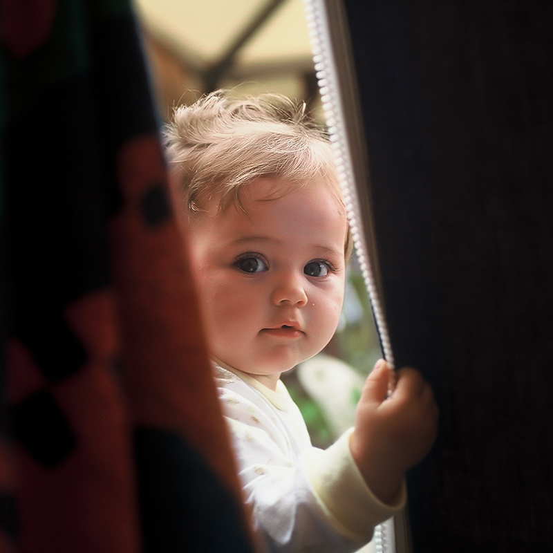 Tempismo perfetto per riprendere il momento in cui il bimbo guarda curioso oltre la fessura dei muri, e buona la luce diffusa che illumina il bel volto.