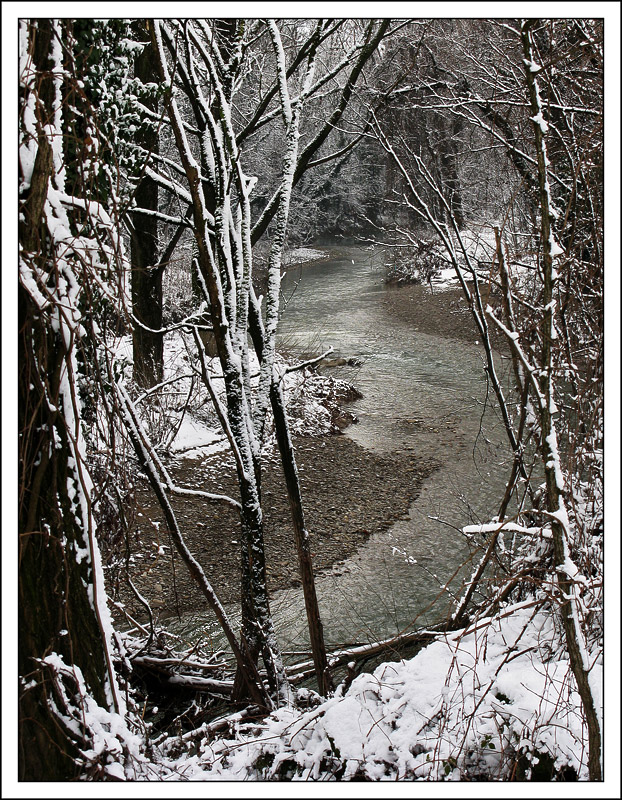 Concordo con gli altri, bello scatto. Molto suggestivi il "quasi bianco e nero" e il titolo, che rende la foto più suggestiva di un "banale" fiume d'inverno. Complimenti