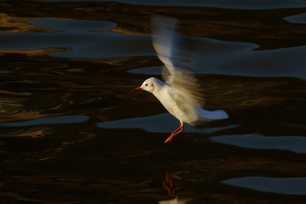 un semplice gabbiano ripreso con un tempo abbastanza lento da quasi non vedere le ali