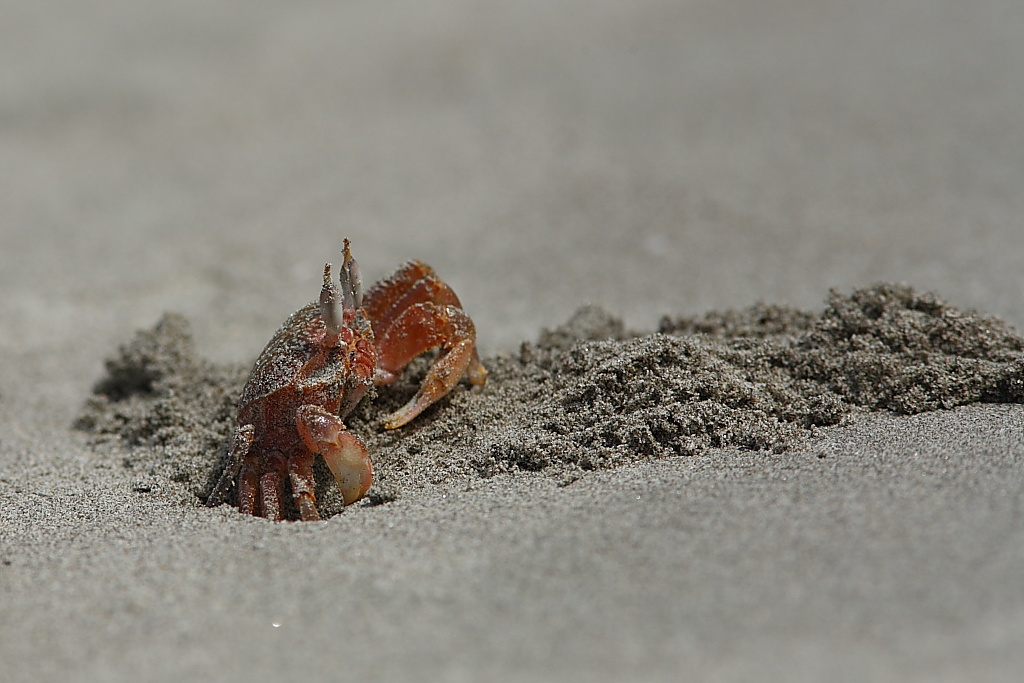 bello il fuoco selettivo sul soggetto e l'effetto sfocato tutto attorno della sabbia  |
