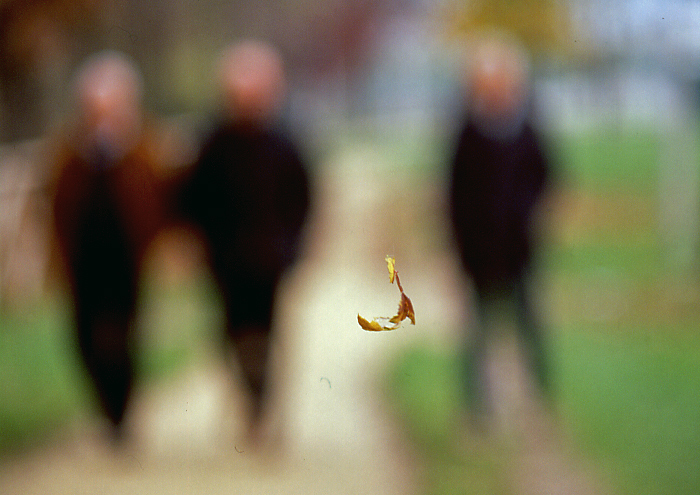 Ma c'è quel contrasto determinante fra il fuoco della foglia e l'indeterminatezza percettibile delle figure umane che la riconduce perfettamente alle sensazioni che volevi trasmettere e che hai efficacemente descritto nelle parole che l'accompagnano.