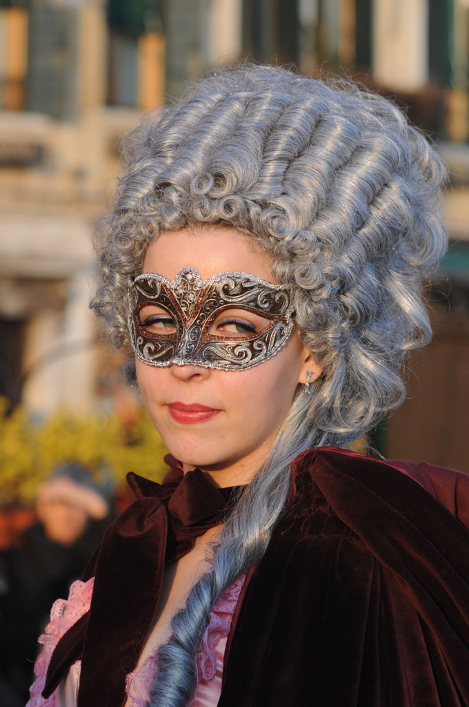 parrucca argentata così come i dettagli della maschera, come gli orecchini e soprattutto il colore degli occhi...peccato sia un po' altrove con lo sguardo....