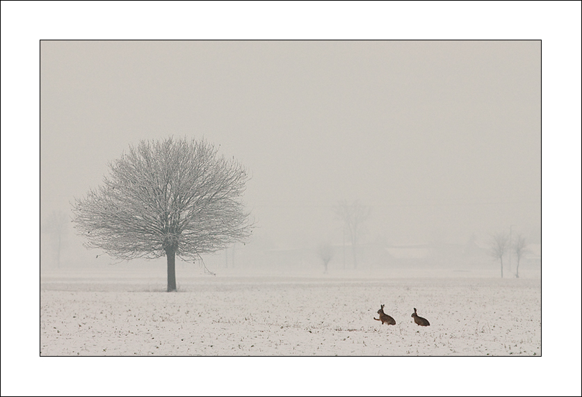 Ancora una volta, una foto di paesaggio molto curata, e questa volta impreziosita da due compiacenti lepri di cui una, con la zampina, indica gentilmente a Baistro l'albero da scegliere come punto nodale dell'immagine...