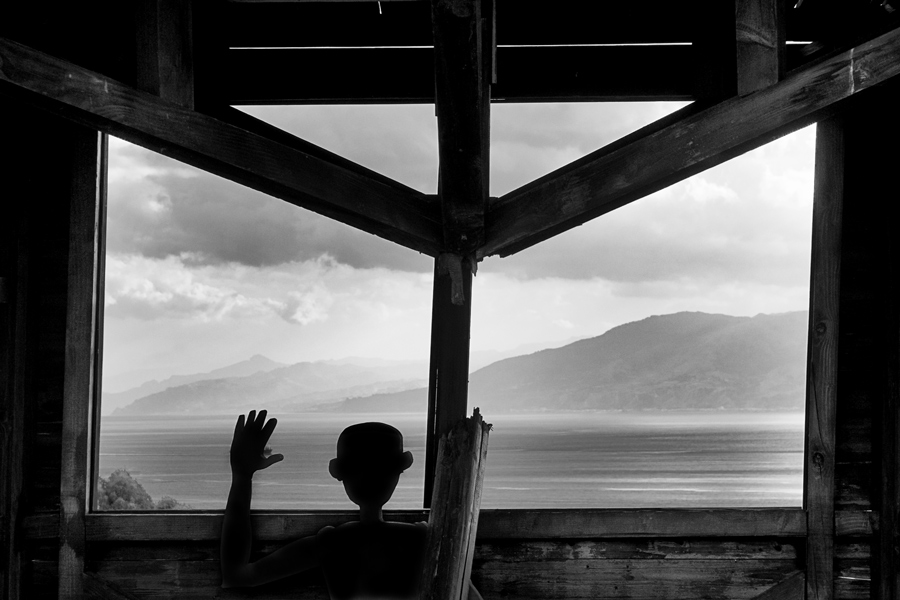 Quoto chi mi precede, trovo molto bello anche il segno di pace suggerito dalle travi che sostengono l'intelaiatura della finestra, bello scatto e per nulla banale, ciao...
