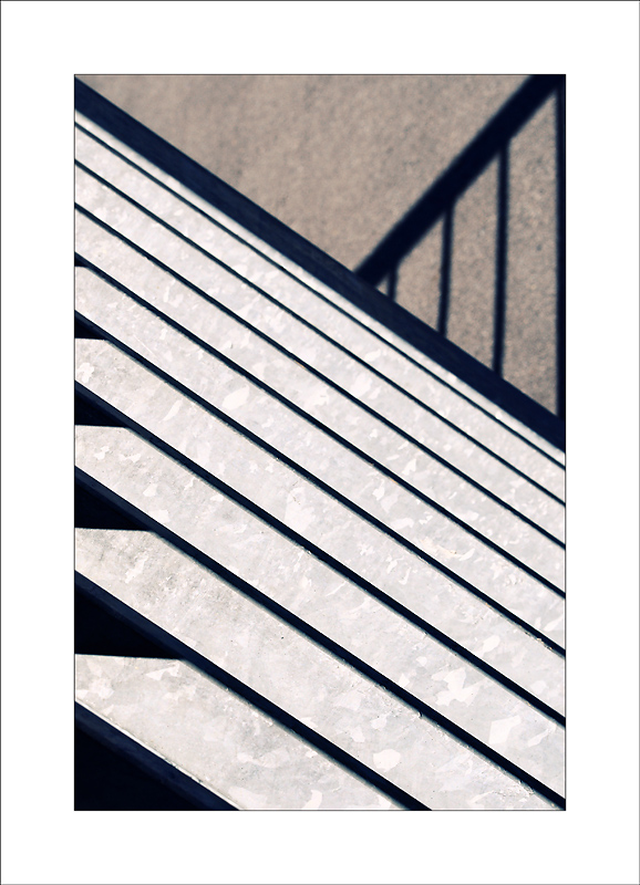 Sempre molto belli i tuoi astratti geometrici, molto bella la contrapposizione tra le linee oblique e quelle verticali e oblique inverse dell'ombra.