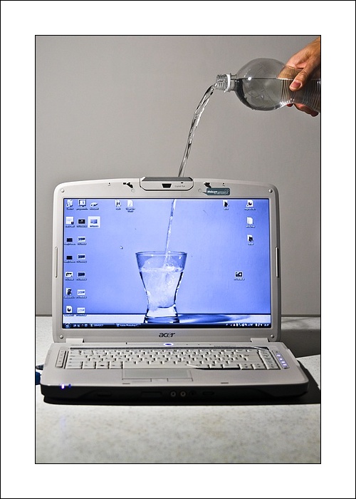 Io avrei usato 2 fonti luminose piazzate una a dx e una a sx e quasi frontali rispetto al pc... in modo da illuminare anche il frontalino nero... e.... un ultimo consiglio... quando fotografi un pc acceso fatti una stampa della schermata (tasto STAMP) e incollacela sopra alla foto in pp... questo semplicemente per avere la fedeltà dei colori del monitor.