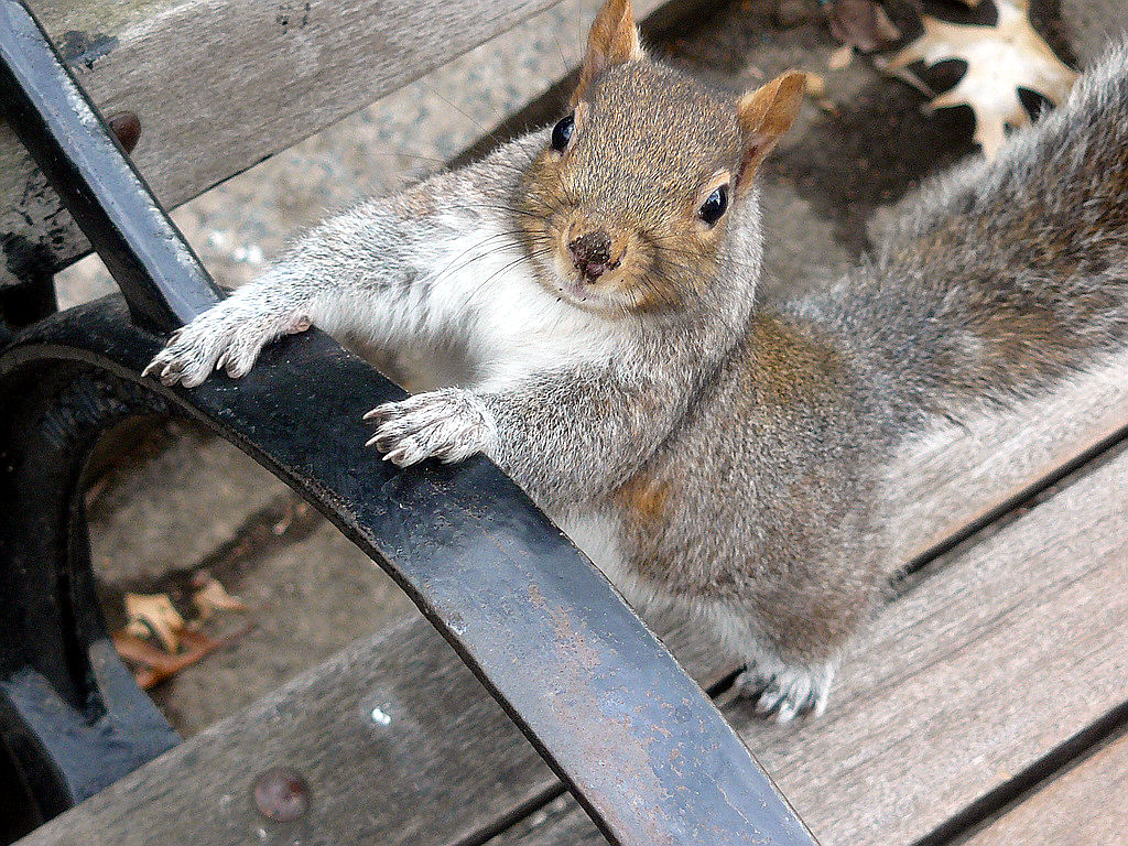 a new york gli scoiattoli non temono l'uomo perchè vengono trattati bene, quindi si lasciano avvicinare! occhio che a volte mordono! Smile