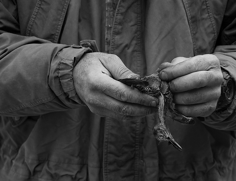 L'osservazione che per prima mi viene alla mente è che questa foto è un fallimento comunicativo. Mi spiego. Credo di capire che il messaggio dovesse essere "guardate questo puzzone che spenna un povero uccellino catturato illecitamente in un periodo vietato, come si vede dal colore del becco". Prima domanda: perchè la trasformazione in B&N? Ottima, tra l'altro, ma inutile e in questo caso controproducente: anche un esperto di merlologia non è in grado di vedere che il becco è giallo, e il commento NON fa parte della foto. Poi: se io intitolassi la foto "Chernobyl", "La forza dell' inverno" "Inquinamento petrolifero" oppure "Baby-pterodattilo", non ci starebbe? L'immagine è AMBIGUA, non direzionata. Il gesto in sè non è violento, anzi potrebbe addirittura sembrare pietoso, l'uccellino porèllo è brutto come poche cose e inadatto a suscitare tenerezza e sdegno, mi rendo conto di fare del "profiling" poco corretto ma la comunicazione risponde a regole precise.